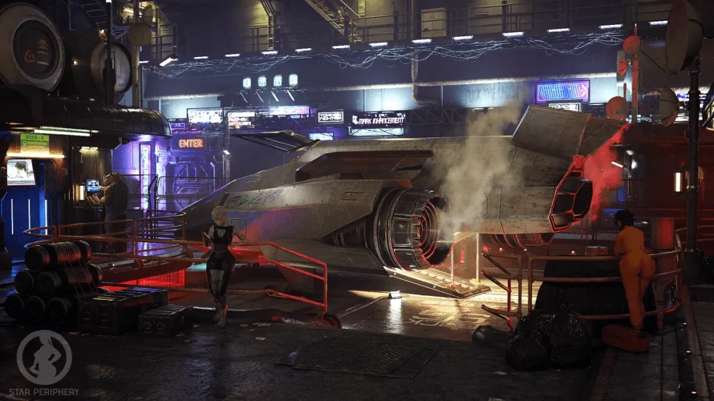 The setting of Star Periphery is a character in itself. ✨ This isn’t a sterile, cold vision of the future. It’s a grimy, vibrant, and utterly convincing galactic fringe where cultures have collided and evolved. Think bustling market hubs under holographic advertisements, shadowy bars where deals are made in whispered tones, and sleek starships covered in the scars of past voyages. The art direction is a love letter to 80s and 90s sci-fi, full of bold colors, practical-looking tech, and a sense of scale that makes the universe feel vast yet intimately detailed.